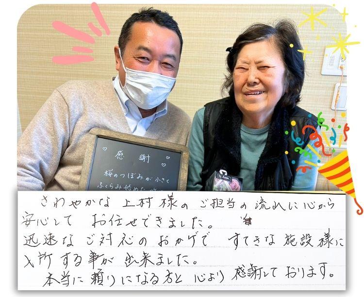 さわやかな上村様のご担当の流れに心から安心してお任せできました。