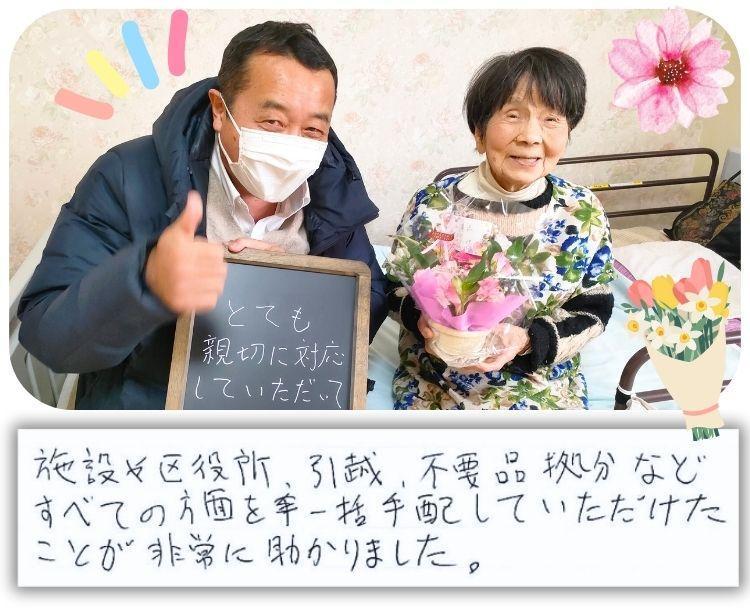 施設や区役所、引越、不用品処分などすべての方面を一括手配していただけたことが非常に助かりました。
